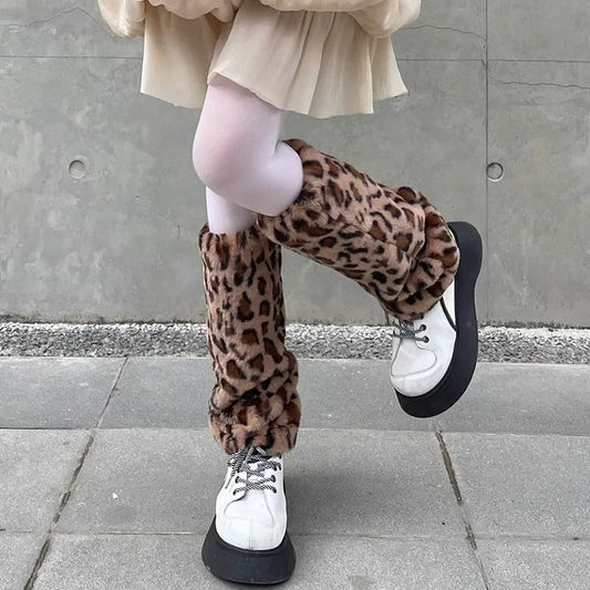 Chaussettes de Bottes en Fourrure Léopard Y2K