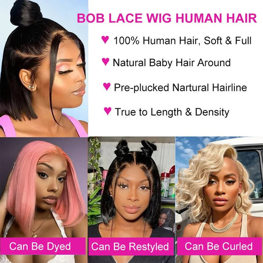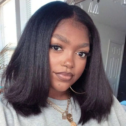 Perruque Bob courte crépue lisse 100% cheveux humains