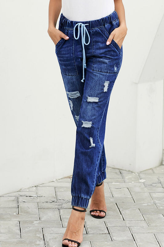 Jeans Bleu Vieilli, Poches & Cordon de Serrage 🔥👖