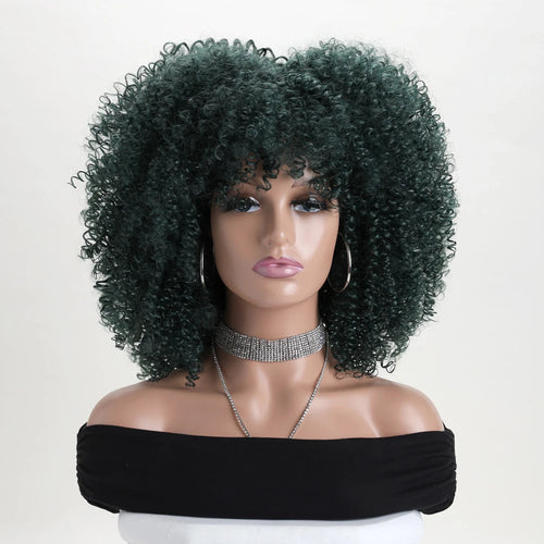 Perruque Afro Crépue Bouclée 16 pouces avec Frange Synthétique Douce – Look Naturel et Volumineux